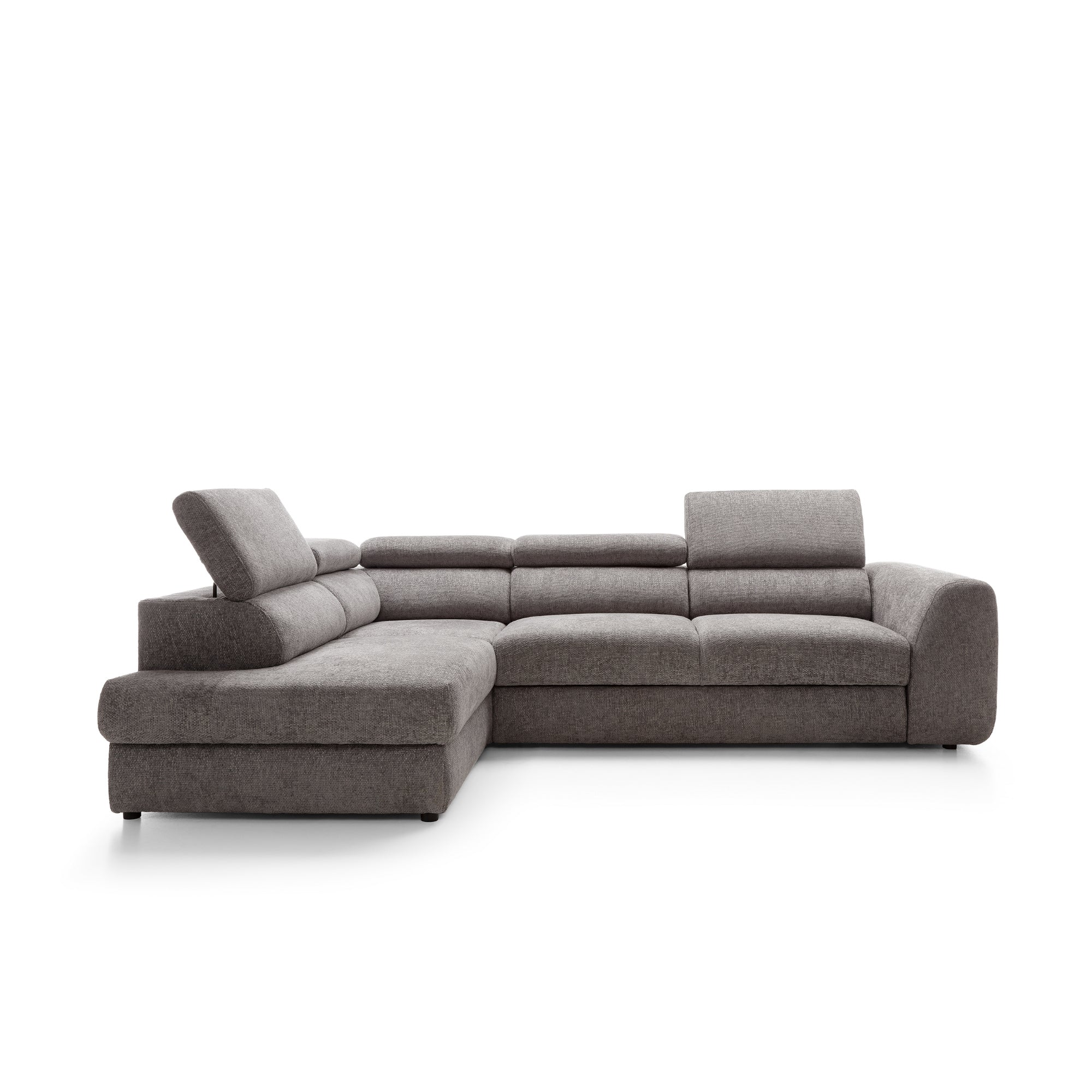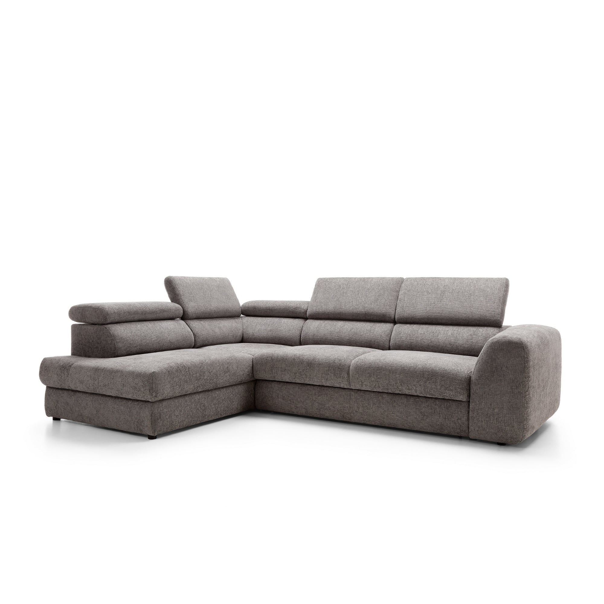 Kutna garnitura Bluvel II prikazana na fotografiji odlikuje se modernim, minimalističkim dizajnom koji spaja eleganciju s udobnošću. Evo ključnih elemenata njegovog dizajna: Kutna garnitura modernog je L oblika što je čini praktičnim rješenjem za prostrane dnevne sobe. Njegov izduženi dio (kauč) predstavlja dodatnu površinu za odmor u poluležećem položaju. Bluvel je opremljen podesivim naslonima za glavu koji se mogu podešavati prema vašim potrebama, što povećava udobnost sjedenja. Nasloni za glavu imaju jednostavnu, geometrijsku formu, koja naglašava moderan karakter namještaja. Sjedalo i naslon za leđa su debeli, mekani i pružaju duboku potporu, što potiče ugodno opuštanje. Masivne, ravne linije ovih elemenata dodaju čvrstoću i uravnotežen izgled kutnoj garnituri. Bočni nasloni za ruke su široki i imaju zaobljene, meke rubove. To čini namještaj ugodnijim i skladnijim, što je u kontrastu s njegovim jednostavnim, geometrijskim linijama. Kutna garnitura Bluvel II spaja minimalistički dizajn s funkcionalnošću, nudi udobno mjesto za odmor i opuštanje, a savršeno se uklapa u moderne, elegantne interijere.