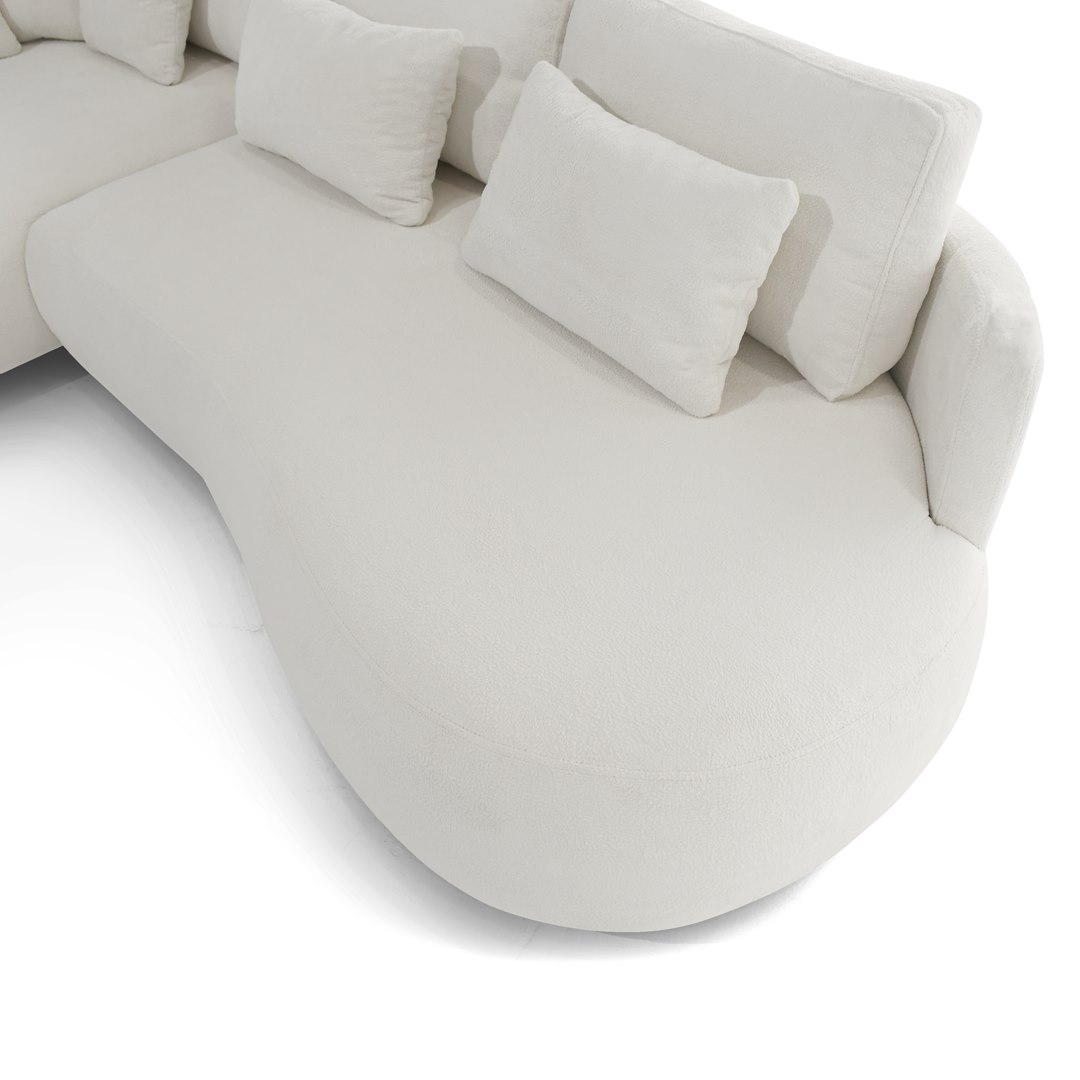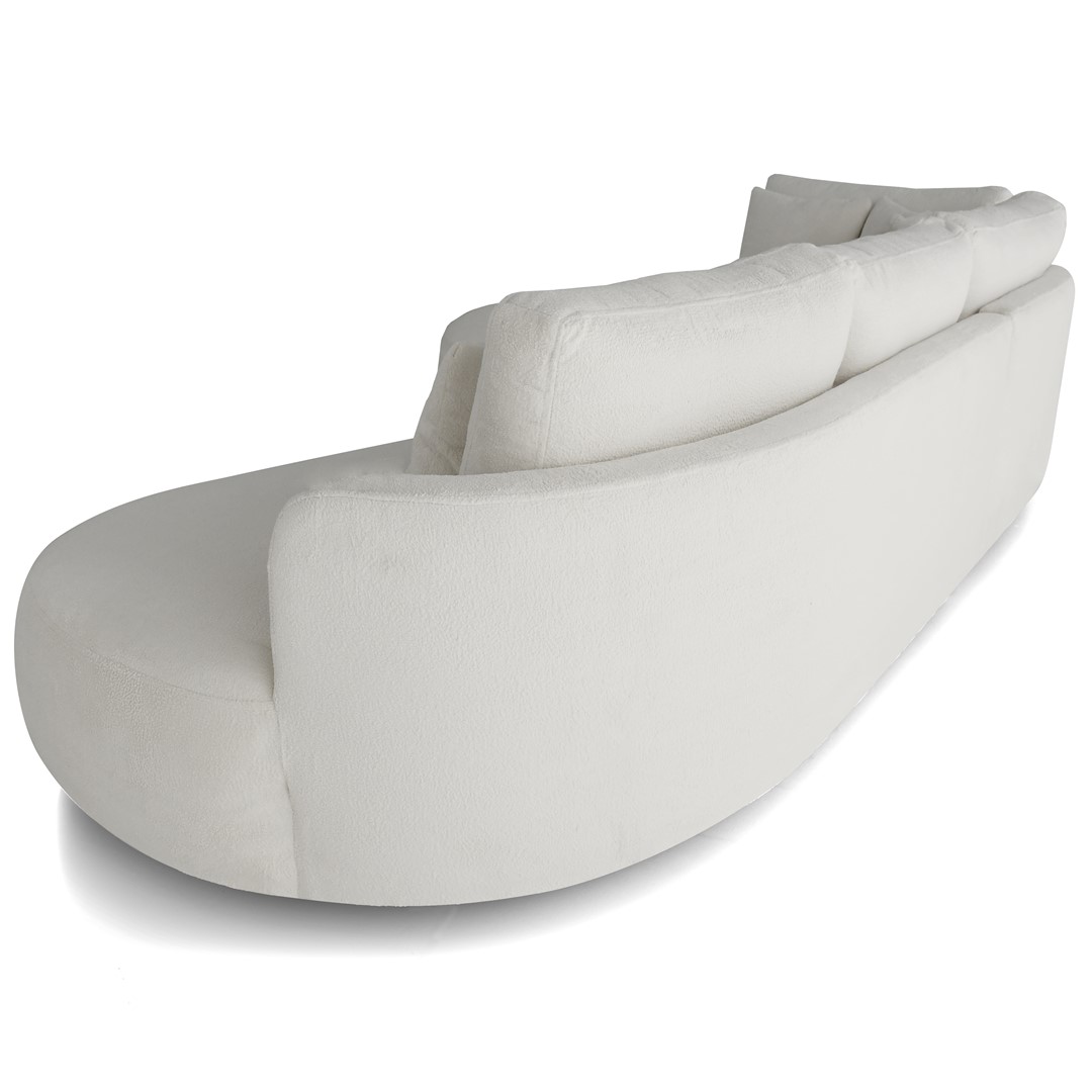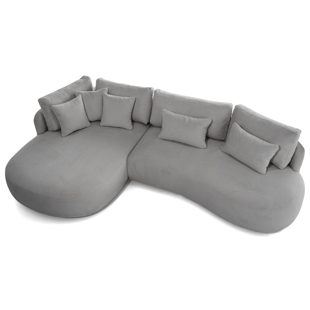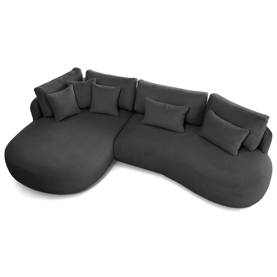 Ova elegantna kutna garnitura ističe se suvremenim, organskim linijama i iznimnom udobnošću. Mekano tapecirana sjedala i zaobljeni oblici stvaraju osjećaj luksuza i topline, dok minimalistički dizajn omogućuje lako uklapanje u moderne, skandinavske i neutralno uređene interijere.